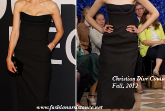 Rachel eligió un elegante little black dress de Christian Dior Alta Costura, Otoño-Invierno, 2012/2013, que combinó con unos zapatos de charol con lazos delanteros, modelo Bow Bow, de Christian Louboutin.