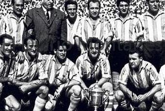 Equipo de la temporada 1949-1950. Arriba, de izquierda a derecha, Ortega, Joseíto, el entrenador Taioli, Elizondo, el delegado Octavio Torres, Pin, Lorín, Ruiz, Amoratiela, Corterol y el segundo entrenador Hernández. Abajo, Bárcena, Mariano, Nemes, Áliva, Felipe, Echeveste y Herrero. :: Álvaro García Pelayo.Foto:El Diario Montañés