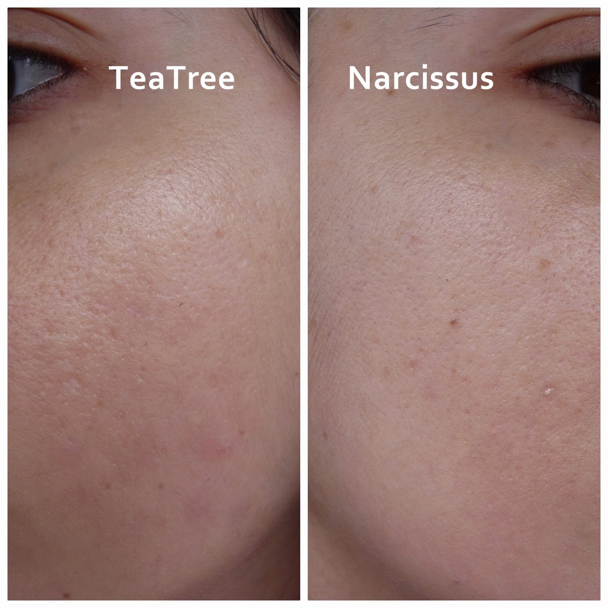 Diferencias entre ambos productos:- Cobertura: La cobertura de ambos es baja, siendo Narcissus ligeramente más cubriente. En las fotos la diferencia es mínima pero Tea Tree es aún más discreta porque es protector solar con un toque de color, no es bb cream ni maquillaje.