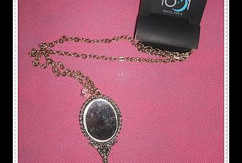 El primer collar que os enseño, es de la marca Las 1001 Noches. Podría decir, que es el collar que más me ha gustado. Es un espejo pequeño y dorado de estilo antiguo, que está tallado y decorado con una bolita clara.