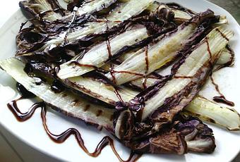 1-2 Radicchio (Achicoria roja), vinagre balsámico y sal gruesa o fina.