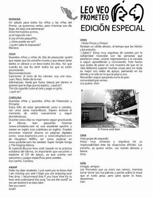 En esta ocasión --y quizá para el recuerdo-- dejamos constancia de los materiales que las y los maestros del Prometeo enviaron a sus queridos estudiantes para trabajar durante los días que se quedaron en casa por el sismo del 19 de septiembre. ¡Radio Prófuga y Leo Veo Prometeo! Centro Freinet Prometeo, Escuela Alternativa en Puebla.