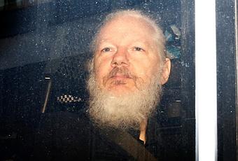 Imágen de Julian Assange, cuando era conducido en calidad de detenido por la policía británica, la mañana de este jueves.