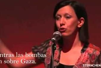 Y éstos no son lados iguales,Ocupadores y ocupados.Y cien muertos, doscientos muertos, y mil muertos.Y entre eso,Entre crimen de guerra y masacre,Ventilé las palabras y sonreí,-no exótica--no terrorista-Y cuento:Cuento cien muertos, doscientos muertos, mil muertos.¿Hay alguien ahí?¿Escuchará alguien?