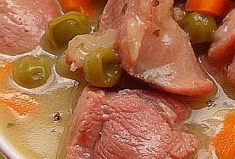- Añadimos la carne de nuevo, las zanahorias cortadas en taquitos, los guisantes, el vaso de sidra, un poco de agua (o caldo de ave) y dejamos cocer tapada a fuego suave hasta que esté tierna.