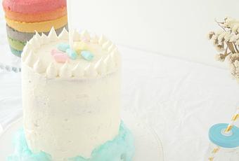 - Garnish with some pastry bag decorations and some blue cottom candy as clouds. WATCH OUT! Place the cottom candy just when you are going to serve the cake because humidity will ruin it.