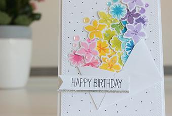 Hello everyone! Today I want to show you a card that was inspired by an image I saw on Instagram. It was basically an envelope with flowers coming out of it in a rainbow order, so I thought...hmmm, that would look so cool in card!!! :)