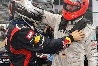 Michael Schumacher y Sebastian Vettel protagonizaron, sin intención de ello, un adelantamiento cuestionado en los últimos compases del Gran Premio de Brasil, que permitió al piloto de Red Bull subir hasta la sexta posición. No obstante, el Kaiser y el recién coronado tricampeón afirmaron que había sido un movimiento justo y necesario dado que el RB8 era más rápido que el W03.