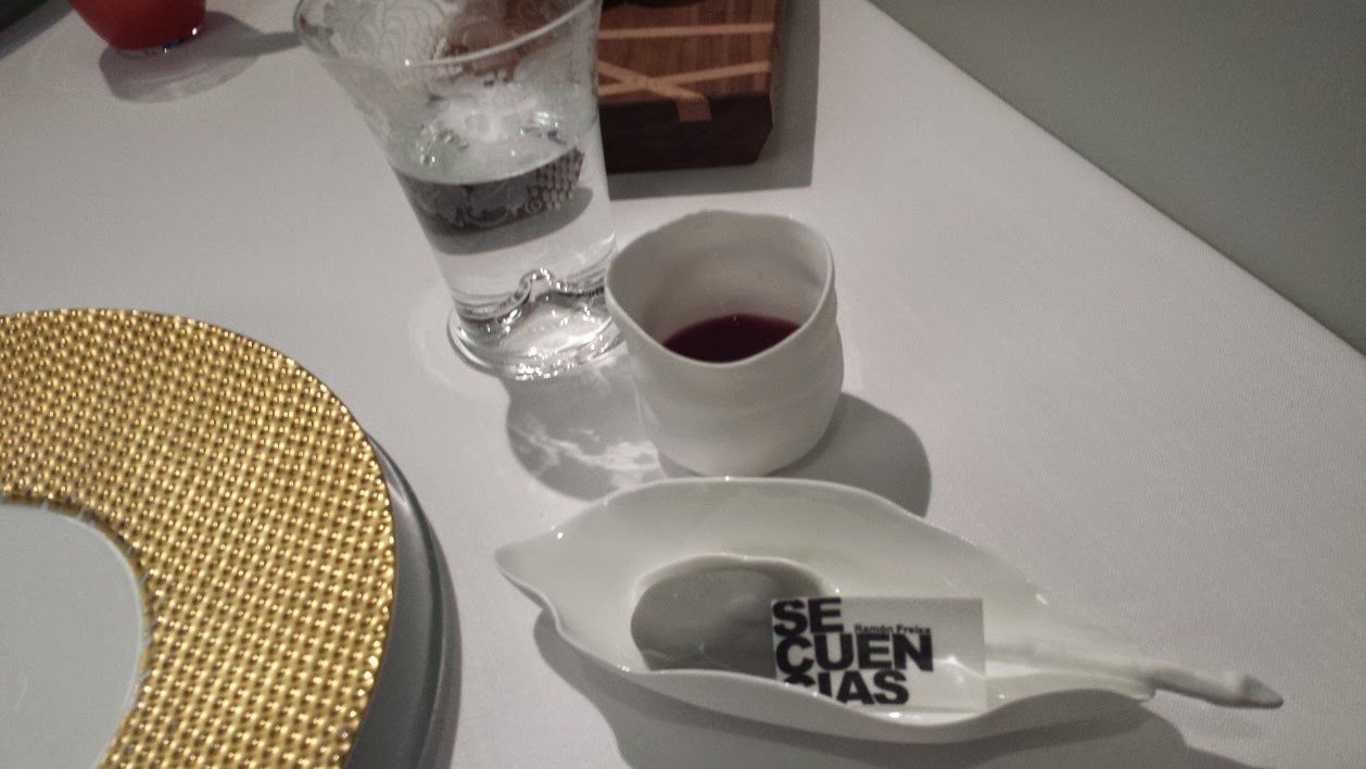 El previo ▪ Piedra y papel, y un vasito de Sangría. Una piedra de manteca de cacao, relleno casi liquido, que se deshace en boca, con un papel comestible¡¡¡¡¡¡¡¡¡¡