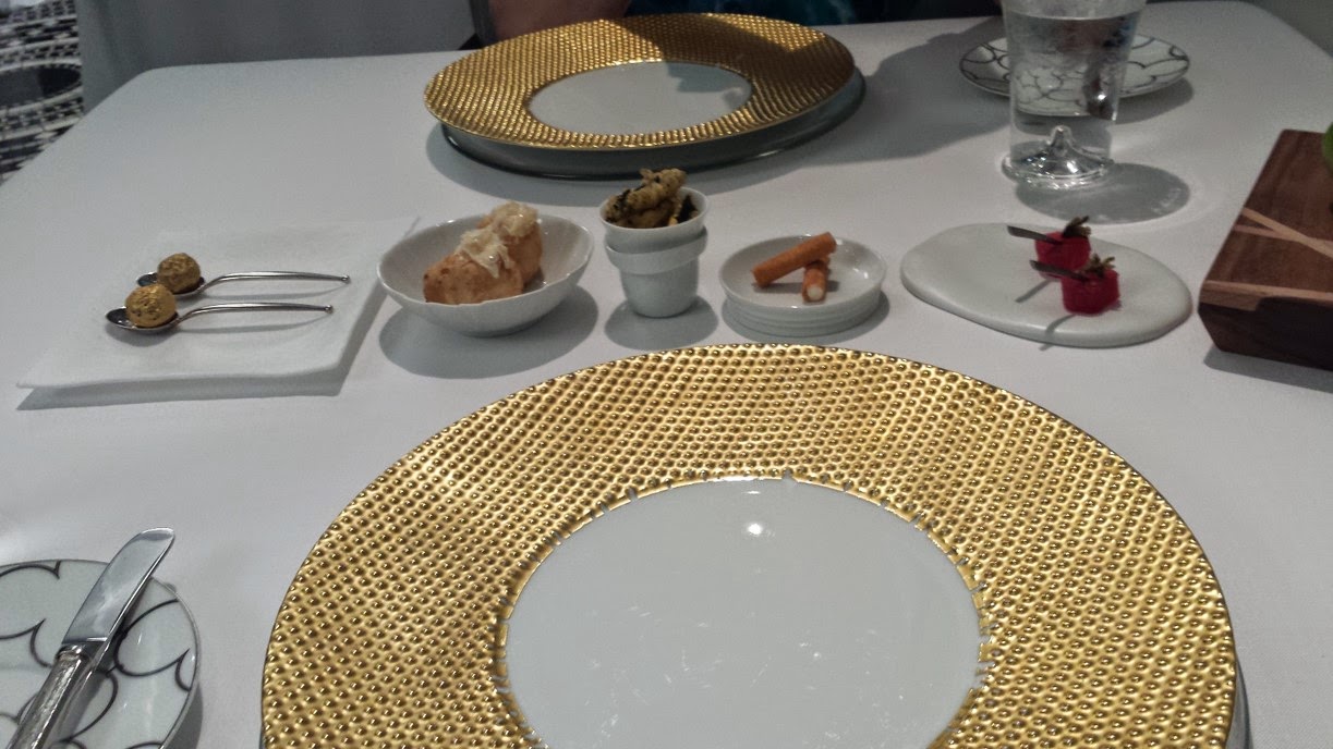 Unos deliciosos aperitivos, con los que nos sorprenden, para empezar, este menú degustación. El principio ▪ Alga “Nori” rebozada. Buñuelo de leche de caserío. Barquillo de espárrago. Ferrero de “foie”.