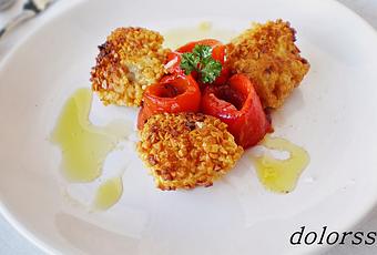 Ingredientes para 4 personas:500 gr. de rape limpio Harina2 huevosAlmendra cruda peladasPimientos asados (aquí) SalAceite de oliva virgen extraAsar pimientos rojos como os comento en esta receta (aquí)