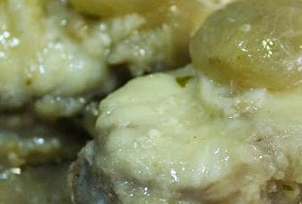 - Sazonar el rape con sal y pimienta, enharinadlo y freírlo en una satén antiadherente. Cuando todas las rodajas estén fritas, pasadlas a una cazuela de barro, añadir las uvas reservadas y la salsa.