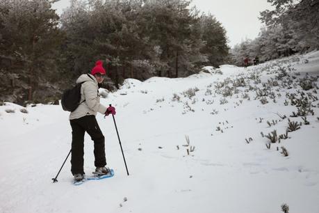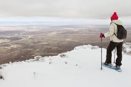 Cómo pasa el tiempo !! Ya estamos en marzo, están subiendo las temperaturas en Madrid, florecen los almendros y los cerezos para decirnos que el invierno se acaba, el sol hace que los días se vuelvan claros y luminosos... Parece primavera y la ruta que realicé recientemente con raquetas en la nieve por la sierra de Madrid me parece ya muy lejana, aunque solo hayan pasado 15 días. Había nieve, mucha nieve. Y parece que aun la hay. Confío en que quede mucha para quien quiera todavía disfrutarla. Yo no pienso subir de nuevo a comprobarlo: muchos kilómetros, un largo y pronunciado ascenso, niebla densa y ventisca en la cumbre... me gustó la excursión, el paisaje, la compañía y la experiencia, que en su día califiqué de dura y angustiosa por las condiciones tan adversas que tuvimos, pero hasta que no se me olvide y se me pase un poco la sensación de estar medio perdida en la montaña sin ver un palmo más allá de mis narices, sin saber donde estaba ni el norte ni el sur y sin saber si volvería a encenderse el GPS, "no repito".