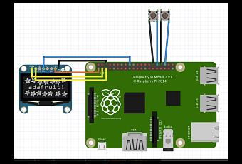 Frederic Vandenbosch ha creado un interesante proyecto con la Raspberry Pi Zero, usando un display de Adafruit anteriormente mencionado y un par de pulsadores soldados en los terminales GPIO de la Raspberry Pi.