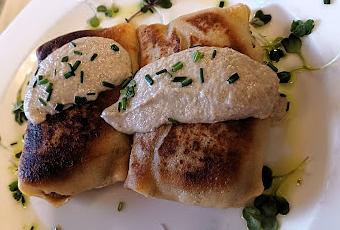 Como esto no podía faltar empezamos por unos Blinis Rasputín. Los blinis tradicionales, rellenos de carne en salsa cremosa de setas rebozuelos.
