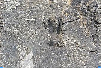 Aquí tenemos sus huellas en una zona con abundante barro, un sustrato muy adecuado para la impresión de las pisadas, en la del jabalí son apreciables las pezuñas delantera y posterior, aunque no siempre aparecen marcadas estas últimas.