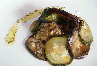 Es un plato vegetariano compuesto por cebolla, tomate, pimiento verde, calabacín y berenjena.