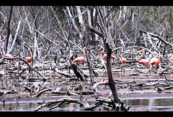 Gracias al hallazgo de nidos y huevos de Flamencos (Phoenicopterus ruber) en áreas del Parque Nacional Laguna de La Restinga, luego de un seguimiento científico y trabajo de acompañamiento con la comunidad por más de 8 años, se logró ratificar la presencia de nidos, huevos y polluelos de esta especie con lo cual se evidencia el cumplimiento del ciclo reproductivo en tierras insulares.