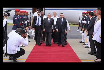El mandatario llegó por el aeropuerto internacional de Punta Cana a las 12:15 del mediodía de hoy, y fue recibido por los embajadores Francina Grullón y Radhis Abreu. Igualmente por miembros del departamento de protocolo de la Cancillería.
