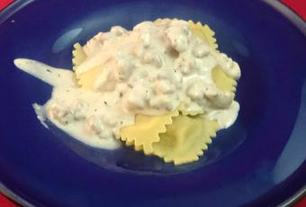 Si hace unos días preparé los raviolis con salsa de queso de cabra esta vez he recurrido a las nueces para estos raviolis rellenos de tomate, mozzarella y jamón.