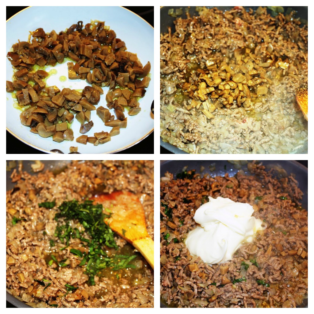 de aceite. Añadimos la carne picada y la rehogamos hasta que