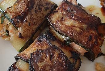 1 puñado de gambas peladas En la misma sartén, hacer las lonchas de calabacín por un lado para que sean más manejables.