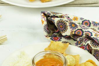 Ingredientes:- 1 paquete de raviolis de pasta fresca, el que más os guste.- 240 ml de buttermilk.- Pan rallado.- Queso parmesano.- Aceite de oliva.- Salsa de tomate.