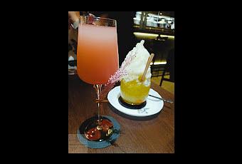 - Fresas con nata a la japonesa: la misma base que en el cocktail de kaipirinha, hielo en lascas prensado y con jugo de fresa, frambuesa y lima con una nata avahinillada, peta-zetas y algodón dulce.