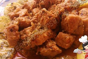 El secreto de este plato es conseguir que la carne quede jugosa, suena más fácil de lo que es, y conseguir el adobo exacto para que luego la salsa tenga ese tono oscuro del pimentón.Según he leído sobre esta receta, es una tapa típica de Galicia...