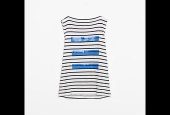 Vestido de algodón con rayas marineras y cuello redondo. Es de Zara. 17,95€