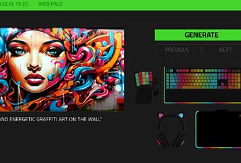 La nueva función “Chroma Generate” genera automáticamente un conjunto vibrante de efectos Razer Chroma basados en los colores centrales de la imagen generada por IA y puede regenerar múltiples conjuntos de efectos repetidamente hasta que el creador esté satisfecho. “Chroma Generate” ha sido preparado para determinar la mejor combinación de colores de IA y seleccionará la selección de colores más vibrante para los efectos Razer Chroma. Cuando estén satisfechos, los creadores pueden aplicar instantáneamente su fondo de pantalla y los efectos Razer Chroma al escritorio de su PC.