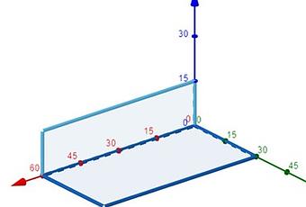 En la vista 3D vemos que el escalón tiene 2 áreas, el área relacionada a la altura pintada de color celeste y el área relacionada a la base pintada de color azul.