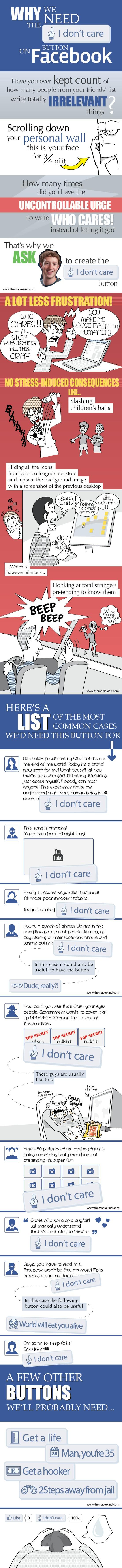 Y ya en clave de humor, os recomiendo esta infografía que nos explica los motivos por los que necesitaríamos tener un botón de "no me gusta" (o de "que te den") a mano en Facebook