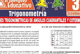 Aquí adquirirás GRATUITAMENTE el siguiente material sobre Razones Trigonométricas de Ángulos Cuadrantales y Coterminales preparado especialmente para los estudiantes de Tercero de Secundaria. Este contenido se desarrolla en el curso de TRIGONOMETRÍA y te lo compartiremos GRATIS en formato PDF.