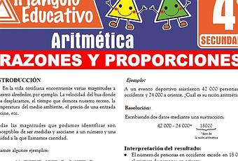 Este material educativo contiene actividades de Razones y Proporciones que ayudaran a los estudiantes de Cuarto grado de Secundaria en su aprendizaje. Ahora te mencionaremos algunas de sus actividades: