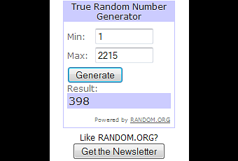 Uno de los ganadores del concurso no ha reclamado su premio, así que lo he vuelto a sortear. Como me he retrasado tanto en volver a sortearlo, deciros al resto de los ganadores que vuestros premios ya están de camino (vamos, que las editoriales estan avisadas). Así que sin más dilación, el pack que ha quedado vacante es el 5 y el nuevo ganador es...