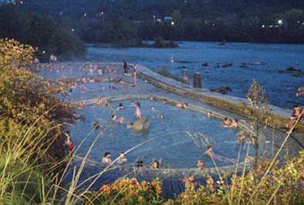 Estas termas son de uso gratuito, fueron las primeras que acondicionaron en la ciudad para el uso y disfrute de los vecinos y visitantes. Sus aguas tienen una temperatura de 43 °C para el baño, pero emanan a 63 ºC y son usadas para tratamientos de reuma, artritis, asma o infecciones de la piel