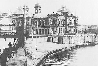 Vista desde el paseo en 1944. La estructura de lonas situada en cubierta recuerda al antiguo Club Náutico. Fuente: "Real Club Náutico de San Sebastián", 1928-1929, 1995, 51