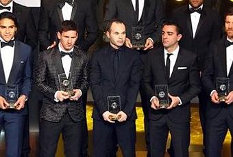 Real Madrid y Barcelona protagonizan el eterno enfrentamiento de dos clubes deportivos colosales, que representan a dos magníficas ciudades, también siempre enconadas, que encabezan dos potentes comunidades, cuya competencia y rivalidad engrandece un país, en las que viven dos pueblos diferentes pero complementarios. Y esa máxima rivalidad les ha llevado a necesitarse el uno al otro, hasta el punto de que ambas entidades no serían tan potentes sin la existencia de su principal rival. Y este choque de titanes desprende tanta energía y vitalidad que ha conducido al fútbol español a lo más alto de la cúpula mundial de forma aplastante. Eso es lo que se pudo comprobar en la Gala del Balón de Oro que se ha celebrado en la localidad suiza de Zúrich, donde los integrantes de ambos clubes han copado los principales premios del balompié internacional.El hecho de que los once jugadores elegidos para formar el mejor equipo europeo, lo que equivale al más fuerte del orbe, formen parte de la Liga española es claramente revelador. Es algo insólito que ni en los mejores momentos del fútbol alemán o inglés se pudo disfrutar. Y todavía resulta más esclarecedor que Real Madrid y Barcelona se repartan, con cinco puestos cada uno, el equipo ideal: Casillas, Marcelo, Ramos, Alonso y Ronaldo, por los blancos; y Piqúe, Älves, Xavi, Iniesta y Messi, por los azulgrana, con el punto sobre la i del atlético Falcao. Si además se añade que los tres mejores jugadores (Messi, Ronaldo e Iniesta) visten las camisetas de estas mismas entidades, así como los tres mejores entrenadores (Del Bosque, Mourinho y Guardiola) desarrollan su actividad en las competiciones patrias, se obtiene el dominio más absoluto nunca jamás visto en deporte alguno. Y esto se debe en gran parte al inigualable nivel de competencia que nace de este duelo sin par.