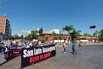 Partiendo desde el Jardín de Tequis, un contingente de cerca de 200 personas marcharon con rumbo a la Plaza de las Armas, cargando varias mantas con mensajes como «Alto Inseguridad», «Vete nava», «Ponte a trabaja» «San Luis inseguro, Nava no pudo». Además de las lonas y pancartas también se estuvieron gritando consignas contras las autoridades para pedir que se atiendan esta problemática que ha disminuido la calidad de vida de los potosinos.
