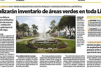 La recuperación y aumento de áreas verdes en Lima Metropolitana son aspectos que no piensa descuidar la nueva gestión del municipio. Por ello, según lo informado por Anna Zucchetti, presidenta del Consejo Administrativo del Servicio de Parques de Lima (Serpar), dicha institución tiene planeado realizar en los próximos meses un inventario del verde urbano.