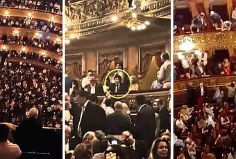 Algunos de los presentes lo descubrieron y se acercaron a saludarlo. Milei -que fue por pimera vez en su vida al Colón- repartió apretones de manos y sonrisas acompañado de Florez, que estaba enfundada en un vestido rojo furioso, como la bandera del Partido Comunista. Por supuesto que también lo descubrieron aquellos que rechazan al libertario y fue allí que comenzaron a escucharse algunos repudios y luego el «Milei, basura, vos sos la dictadura», al que pronto se le sumó el «Nunca Más, Nunca Más».