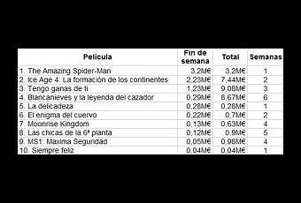 Como ya se anunció en la nota de prensa oficial de Sony, The Amazing Spider-Man ha sido la película que más ha recaudado en España durante el pasado fin de semana, con más de tres millones de euros. De momento, consigue situarse como el segundo mejor estreno del país en 2012, tras los 5,5 millones de Los Vengadores.