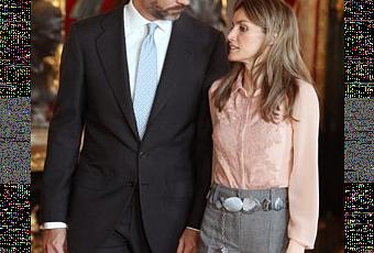 Arriba podemos ver imágenes de la recepción que la Familia Real ofreció en el Palacio Real de Madrid con motivo del Día de La Hispanidad. Dña. Letizia ya sin chal, lleva blusa rosa, pantalones grises y cinturón con piezas metálicas. La Infanta Cristina, sin abrigo, vestido de encaje de manga corta.