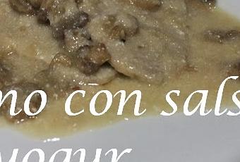 elaboration First flour the fillets had tape back and mark them in the pan with a splash of oil, just back and forth, as if in the end we spent a lot shall be very dry. Cut the onion into fine pieces and put to fry in the pan with oil, when browned add the mushrooms and let them do well. Once the last two ingredients are, add the fillets in the pan, braise with glass of white wine and then pour the plain yogurt. Stir well and leave for about 15-20 minutes to do more or less.