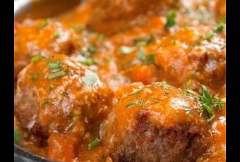 -Vierte el vino, déjalo reducirse y añade el calabacín, los tomates pelados y rallados y una pizca de azúcar. Salpimienta, agrega las albóndigas y cuece 15 minutos.