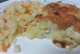 Recientemente hemos tenido una celebración familiar en casa, concretamente una cena, y por variar un poco, se nos ocurrió que los platos fueran portugueses. Cada vez que vamos por el país vecino, el bacalao es un plato fijo, así que elegimos el Bacalao com Natas como plato principal, acompañado de un poco de arroz blanco con zanahoria y como aperitivo, unas empanadillas de pollo al curry.