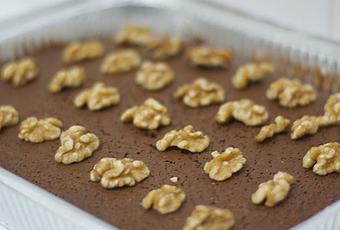 Mientras se calienta la mezcla habremos colocado algunas nueces en la superficie del brownie de modo decorativo.