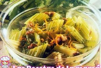 Las recetas de la mamá te recomienda que elabores esta magnífica ensalada. Es una ensalada diferente de las tradicionales, hecha con apio y nueces, y aromatizada con zumo y corteza de naranja. Para obtener un sabor más ortodoxo, sustituye la naranja por limón. Sirve la ensalada en un gran bol de cristal