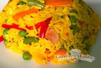 Es así como esta receta incluye: arroz, verduras y pollo, aunque en algunas ocasiones se agrega salchicha tipo frankfurt; en esta receta que compartimos se incluye lomo de cerdo también.